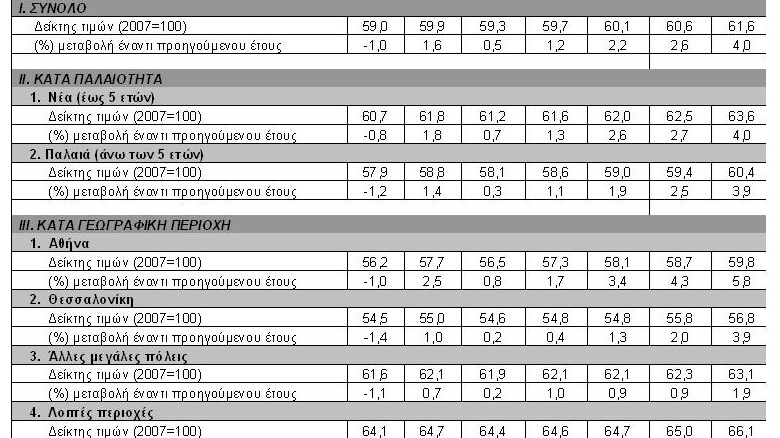 Δείκτες τιμών διαμερισμάτων κατά παλαιότητα και γεωγραφική περιοχή