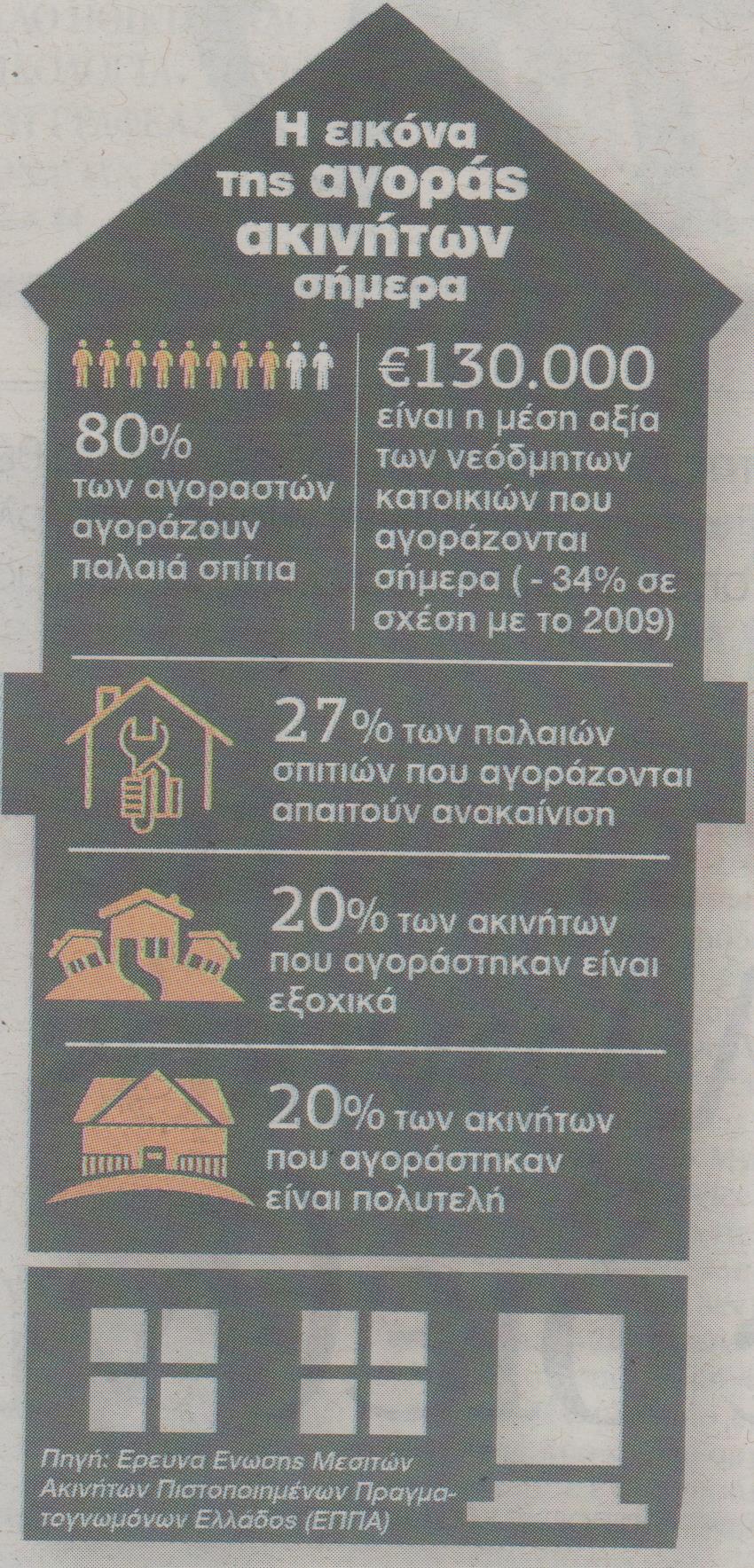 Στο ερώτημα «Ποιοι, που και γιατί αγοράζουν ακίνητα στην Ελλάδα σήμερα», όπως είναι και ο τίτλος της έρευνας, η απάντηση είναι ότι η κρίση έστρεψε οκτώ στους δέκα αγοραστές ακινήτων σε παλαιά σπίτια, από τα οποία για το 27% απαιτείται ανακαίνιση.