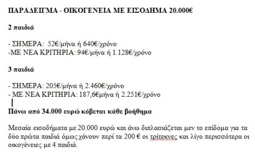 Στην πράξη, καταργείται το επίδομα τριτέκνων (έως 1.500 ευρώ το χρόνο) σε όσους τρίτεκνους ή πολύτεκνους έχουν από 34.000 ευρώ και πάνω οικογενειακό εισόδημα.