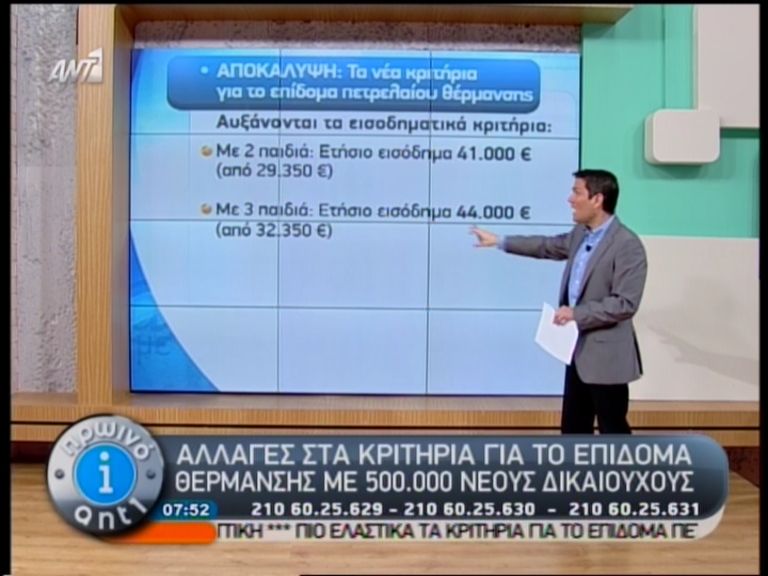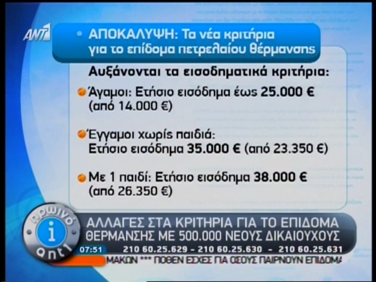 Περίπου 500.000 νέους δικαιούχους αφορά το επίδομα θέρμανσης, βάσει κάποιων αλλαγών στα κριτήρια. Μέχρι την προσεχή Τετάρτη ή, Πέμπτη αναμένεται να ξεκινήσει το πρόγραμμα επιδότησης πετρελαίου θέρμανσης.