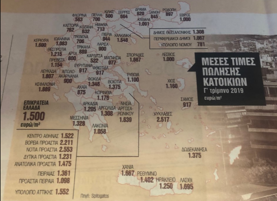 Δείτε τον χάρτη με τις μέσες τιμές πώλησης των κατοικιών