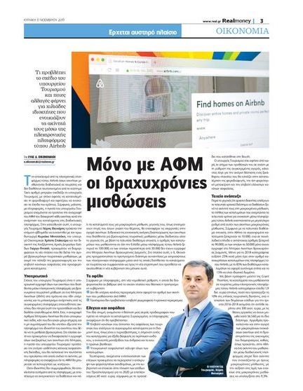Σύμφωνα, μάλιστα, με πληροφορίες, η ηγεσία του υπουργείου Τουρισμού αναμένεται να προτείνει την αναγραφή του ΑΦΜ του διαχειριστή κάθε ακινήτου κατά την ανάρτηση του καταλύματος στις διαδικτυακές πλατφόρμες.