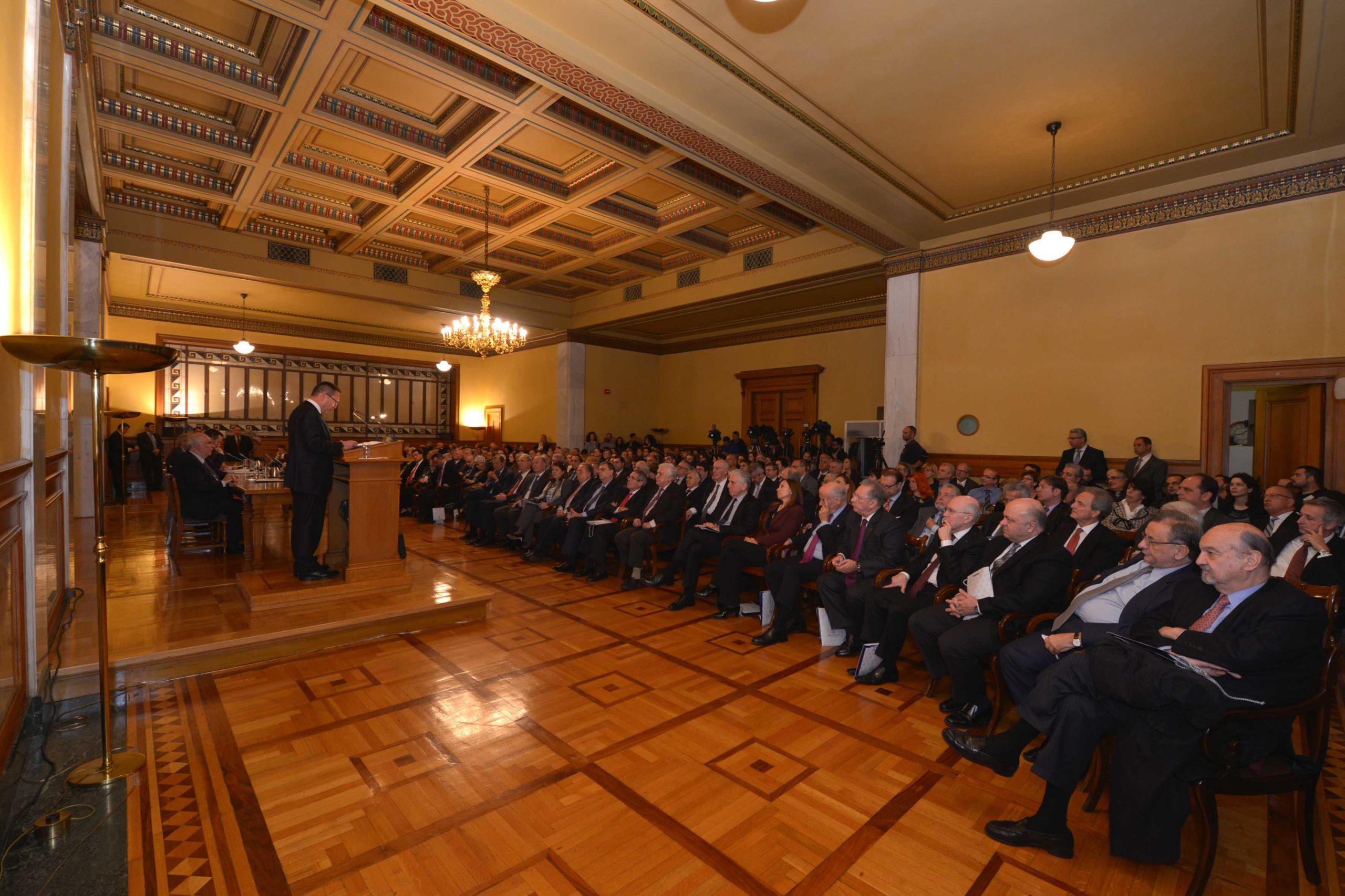 Μιλώντας σε ειδική εκδήλωση για τον Ξενοφώντα Ζολώτα, με αφορμή τη συμπλήρωση 110 ετών από τη γέννησή του, είπε συγκεκριμένα: “Από την προηγούμενη θητεία μου ως Υπουργός Οικονομικών, γνωρίζω πολύ καλά το τεράστιο βάρος της νομοθετικής προσαρμογής στις νέες συνθήκες που σήκωσαν οι Έλληνες βουλευτές. Με το θάρρος της προσωπικής γνωριμίας με κάθε ένα εξ αυτών αλλά και της στήριξης που μου παρείχαν στη Βουλή τα προηγούμενα χρόνια, θα ήθελα να προχωρήσω ένα βήμα παραπάνω και να τους ζητήσω να συνεκτιμήσουν το μεγάλο αυτό και άμεσο κίνδυνο στις αποφάσεις τους”.
