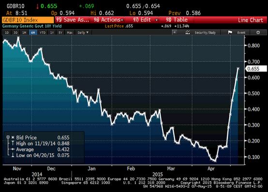 Τα επιτόκια των ομολόγων στην ευρωζώνη έχουν ενισχυθεί σημαντικά καθώς ξεπουλούνται στις αγορές. Η απόδοση του γερμανικού 10ετούς ομολόγου έχει ανέβει στο 0,66% (από το μηδέν σχεδόν πριν ένα μήνα) σε υψηλό έτους τραβώντας και το ευρώ, ενώ σε υψηλό μέσα στο 2015 βρέθηκε και το επιτόκιο των ιταλικών 10ετών ομολόγων στο 2%, το ίδιο τα ισπανικά και τα γαλλικά ομόλογα.