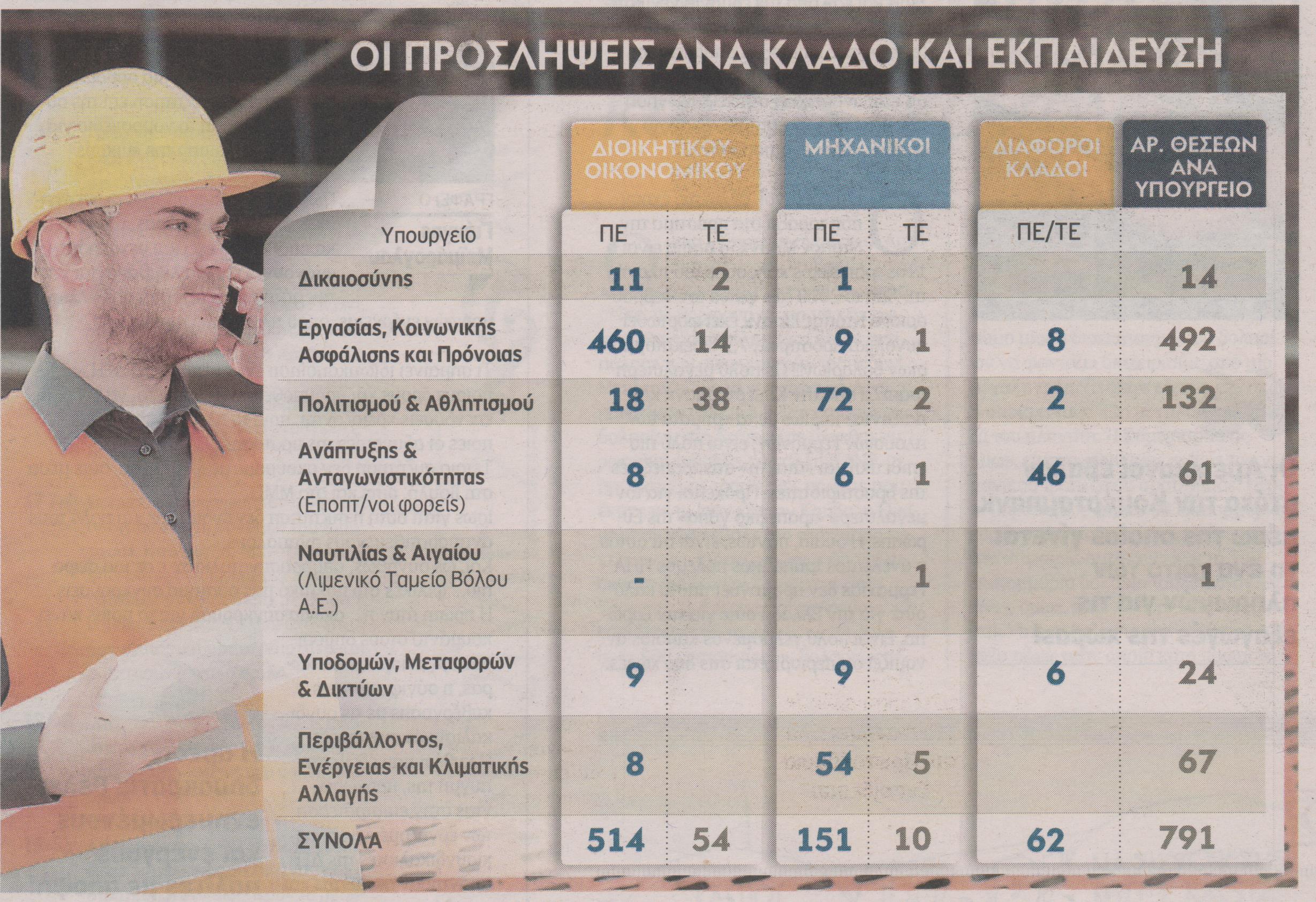 Σε πρώτη φάση ξεκινάει η διαδικασία για τη συμπλήρωση 791 θέσεων σε υπουργεία από πτυχιούχους που έχουν πετύχει σε διαγωνισμούς του ΑΣΕΠ από το 2006 έως σήμερα.
