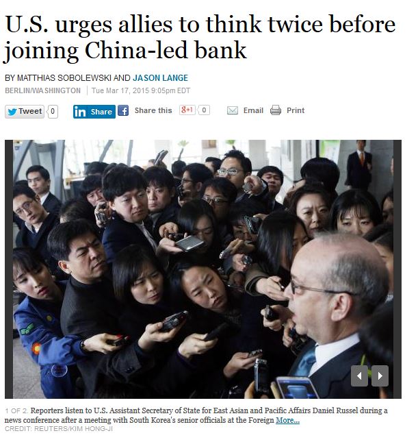 Την περασμένη εβδομάδα, η Βρετανία έγινε η πρώτη μεγάλη δυτική χώρα που υπέβαλλε αίτημα για να γίνει ιδρυτικό μέλος στην Asian Infrastructure Investment Bank, την οποία οι ΗΠΑ αντιμετωπίζουν ως βασικό αντίπαλο της Παγκόσμιας Τράπεζας.