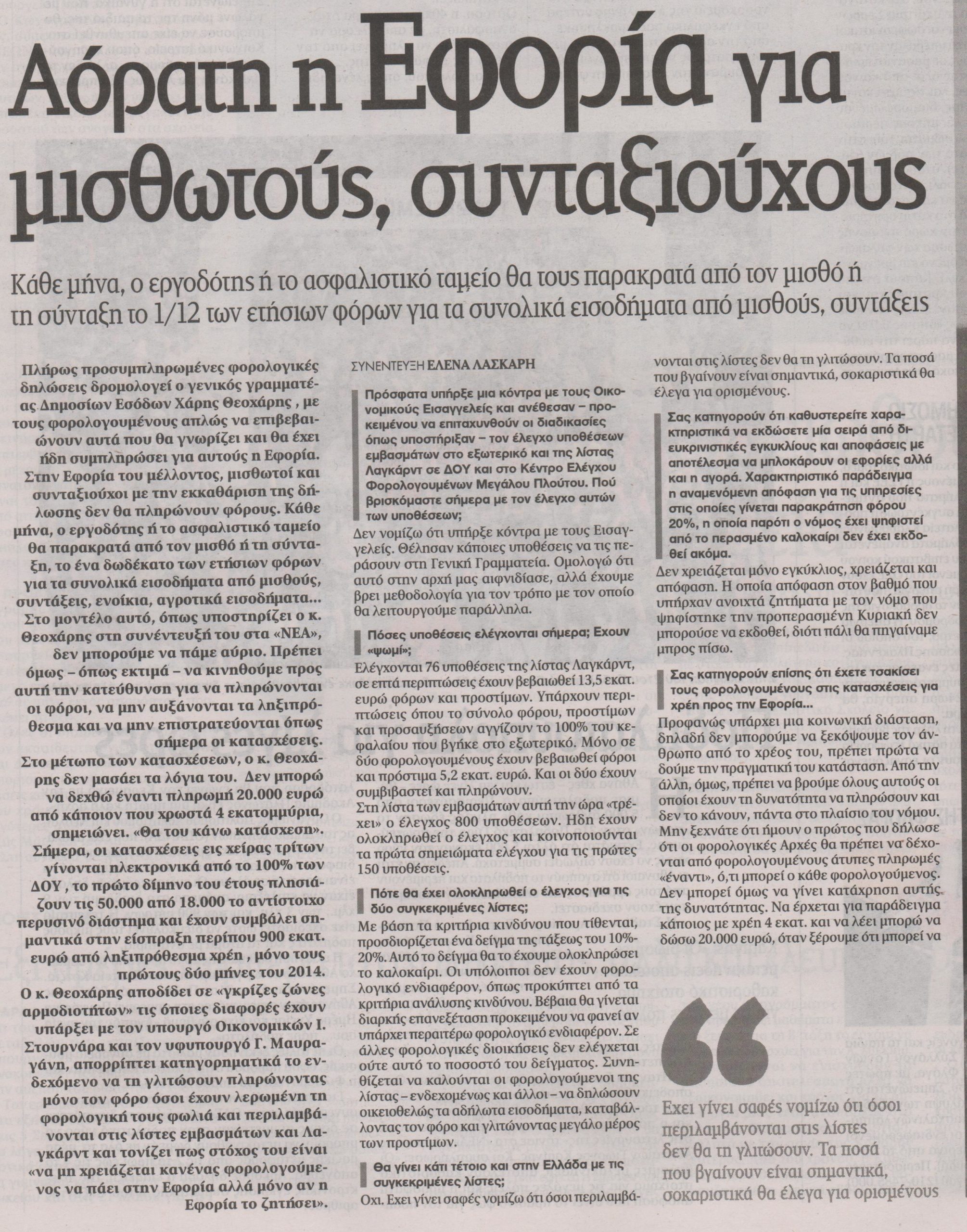 Αόρατη η εφορία για μισθωτούς, συνταξιούχους