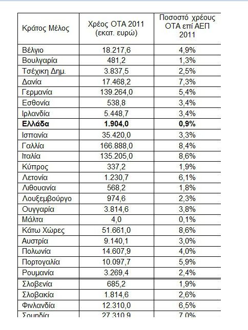 Εντύπωση προκαλεί το γεγονός ότι, όπως και το 2010, οι πλέον εύρωστες οικονομίες της Ευρώπης παρουσιάζουν υψηλά ποσοστά δανεισμού των ΟΤΑ, ως ποσοστό του ΑΕΠ. Έτσι, τα υψηλότερα ποσοστά εμφανίζουν η Ιταλία και η Ολλανδία με 8,6%, η Γαλλία με 8,4%, η Δανία με 7,3%, η Σουηδία με 7%, η Φινλανδία με 6,5% και η Γερμανία με 5,4%. Τα χαμηλότερα ποσοστά από την άλλη, παρουσιάζουν η Μάλτα με 0,1%, η Ελλάδα με 0,9%, η Βουλγαρία με 1,3%, η Λιθουανία με 1,8%, η Κύπρος και η Σλοβενία με 1,9%, κλπ.