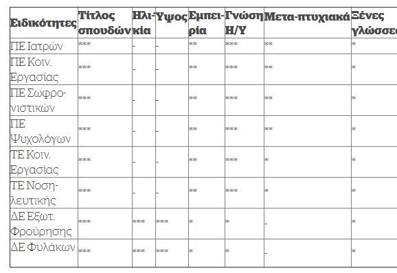 Με βάση την περίληψη της προκήρυξη που δημοσιοποίησε το ΑΣΕΠ, τις διαθέσιμες πληροφορίες και τα κριτήρια που υλοποιούνται για την επιλογή μόνιμου προσωπικού διαμορφώνεται -με τα σημερινά δεδομένα- ο παρακάτω πίνακας όσον αφορά την βαρύτητα των προσόντων στον διορισμό.