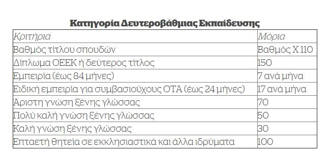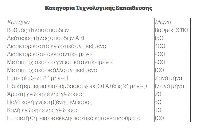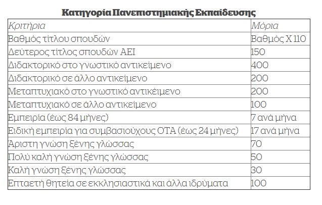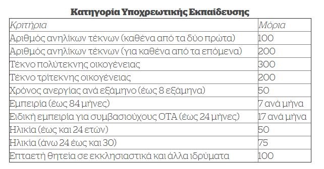 Δείτε αναλυτικά τα κριτήρια μοριοδότης: