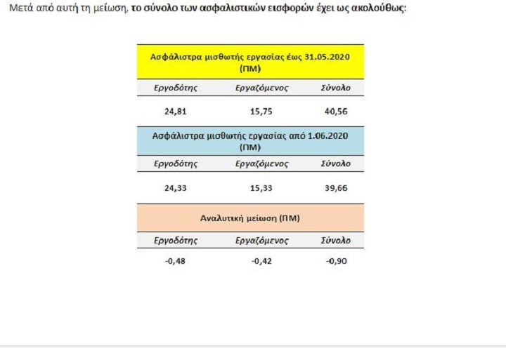 Ξεκινάει, από την 1η Ιουνίου 2020, η εφαρμογή του μέτρου της μείωσης των ασφαλιστικών εισφορών κατά 0,90 ποσοστιαίες μονάδες στη μισθωτή εργασία, μόνο για τις θέσεις πλήρους απασχόλησης.