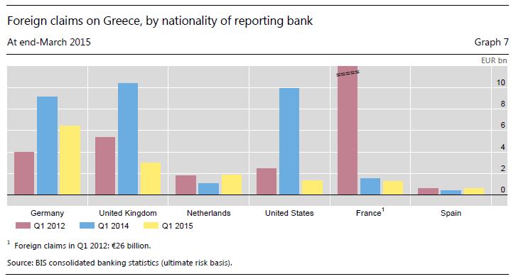 Με την επιστροφή του κλίματος ανησυχίας και αβεβαιότητας τους πρώτους μήνες του τρέχοντος έτους για το ενδεχόμενο πτώχευσης της Ελλάδας, αλλά και ενός Grexit, οι διεθνείς τράπεζες απέσυραν από την χώρα συνολικά 26 δισεκατομμύρια ευρώ.
