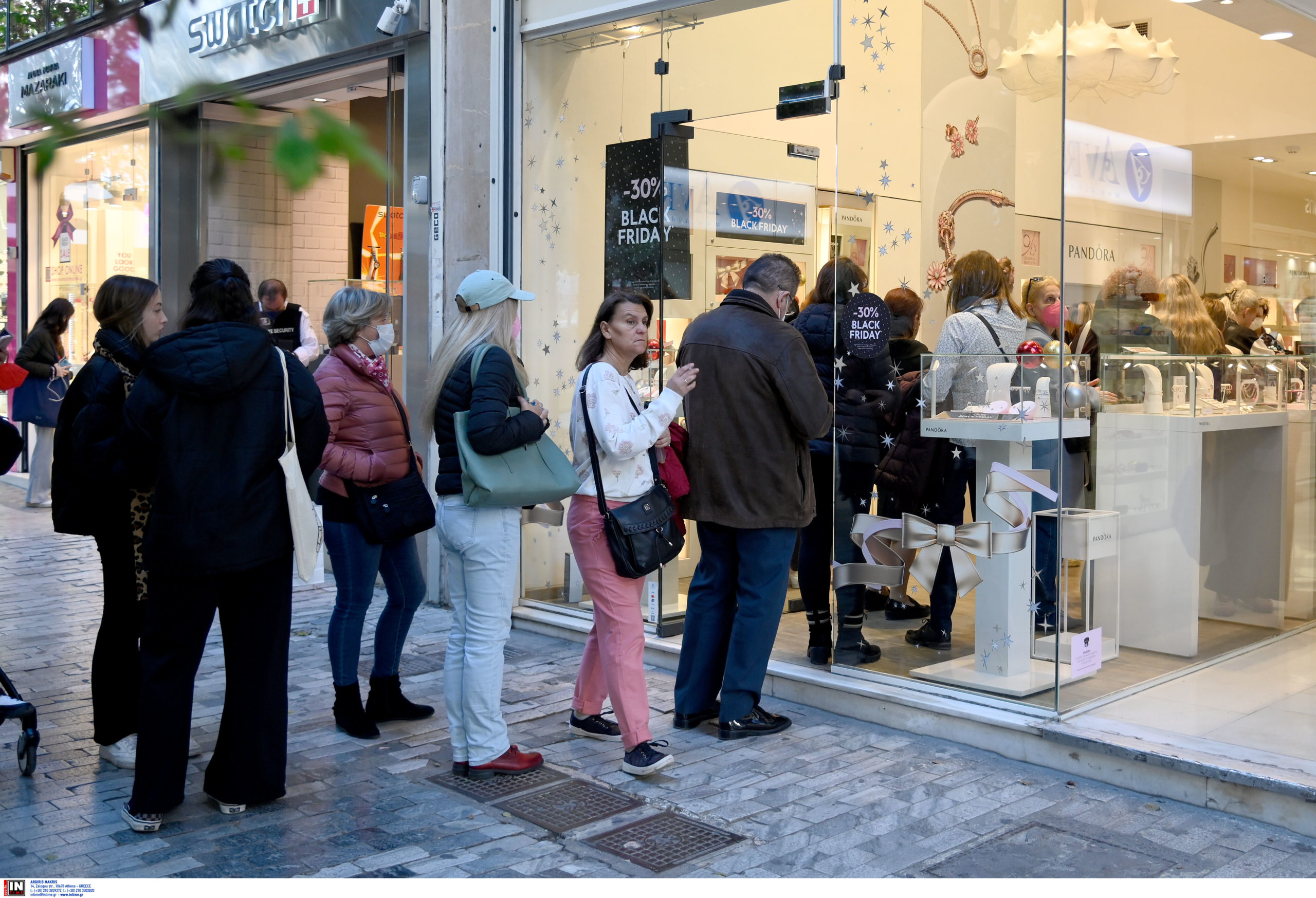 Black Friday σήμερα και πλήθος κόσμου έχει κατέβει από νωρίς στην Ερμού για τις μεγάλες προσφορές.