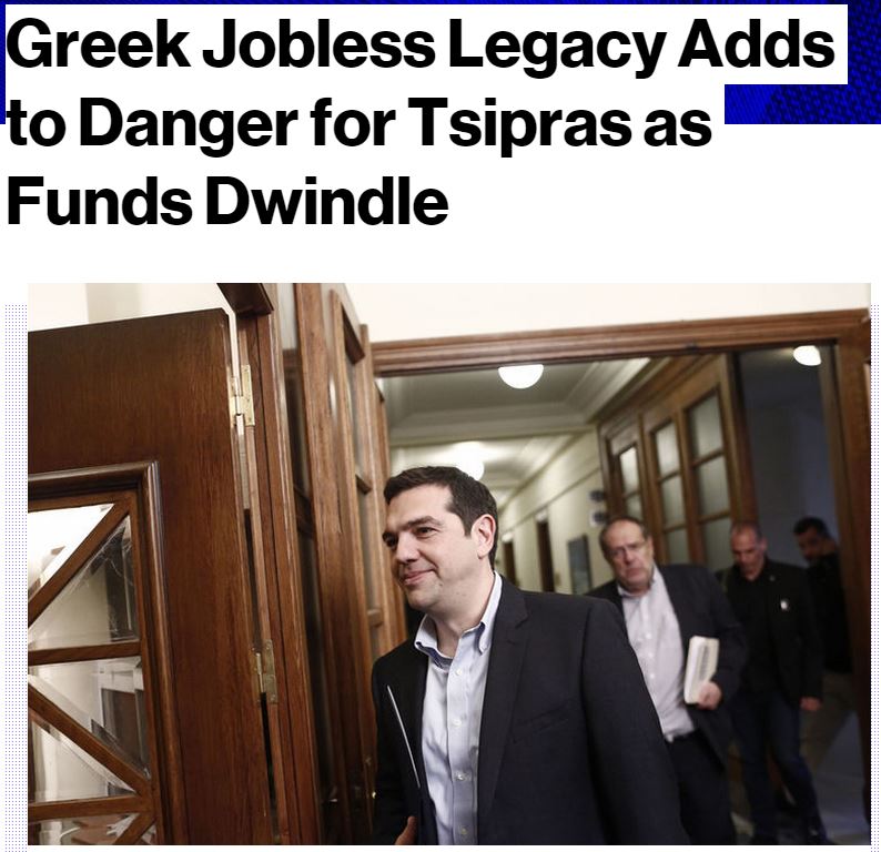 Για τις πιέσεις στη ρευστότητα στην Ελλάδα και τα στοιχεία για την ανεργία και την ύφεση, που στριμώχνουν τον Αλέξη Τσίπρα να υποχωρήσει σε εργασιακά και ασφαλιστικό, αναφέρεται το Bloomberg
