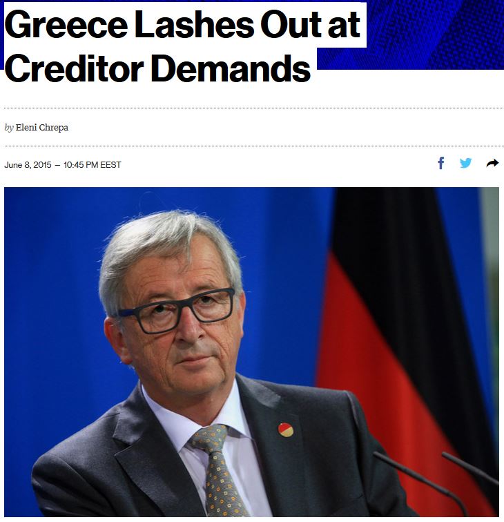 Κλιμακώνεται η απογοήτευση στην Ευρωπαϊκή Ένωση για την Ελλάδα, καθώς αύριο Τετάρτη γίνεται η σύνοδος κορυφής της ΕΕ, γράφει το Bloomberg.