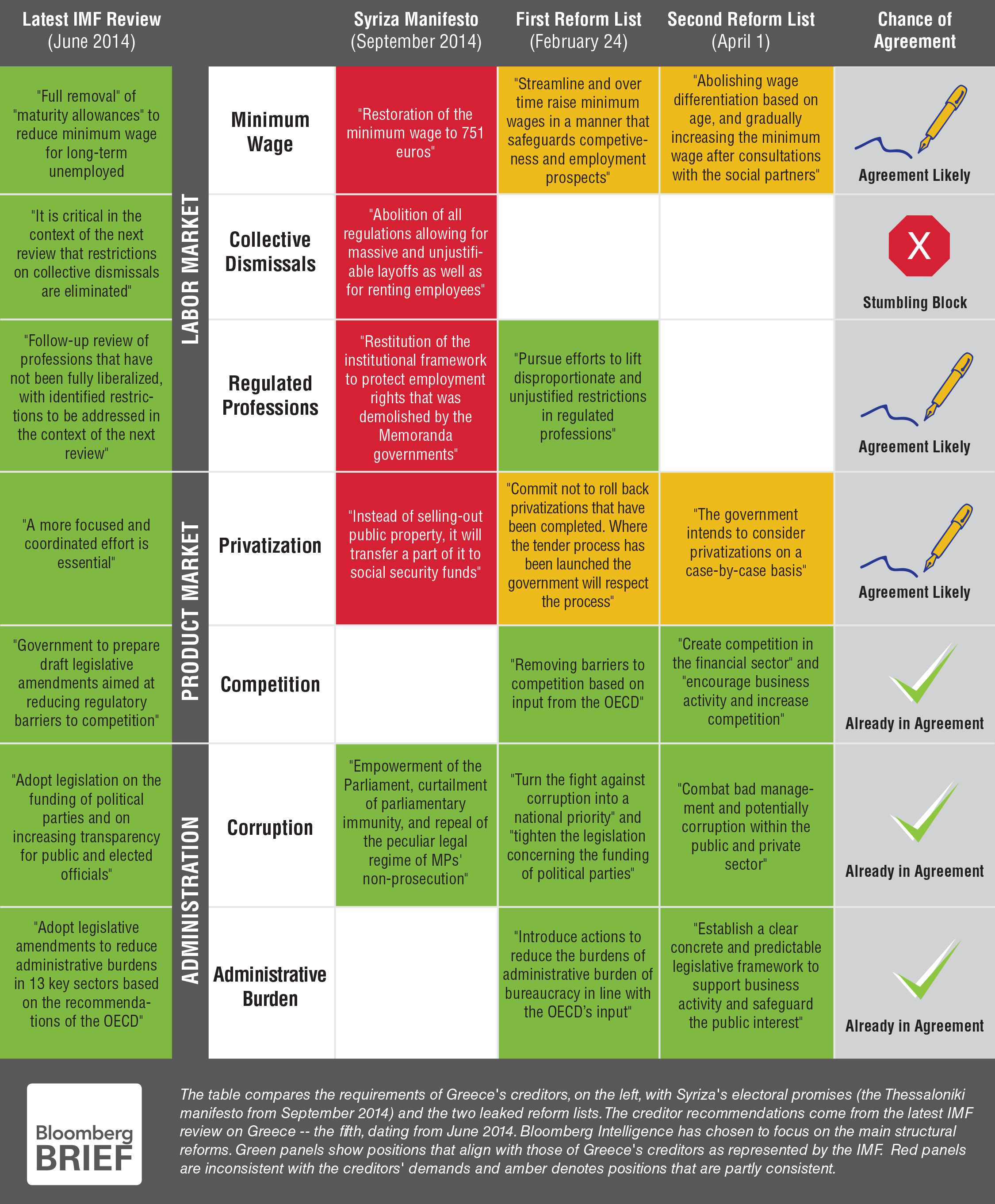 Σε ποια σημεία έχουν συμφωνήσει στις διαπραγματεύσεις η ελληνική αντιπροσωπεία και οι δανειστές και σε ποια έχουν διαφωνήσει; Σε αυτό το ερώτημα επιχειρεί να απαντήσει δημοσίευμα του Bloomberg.