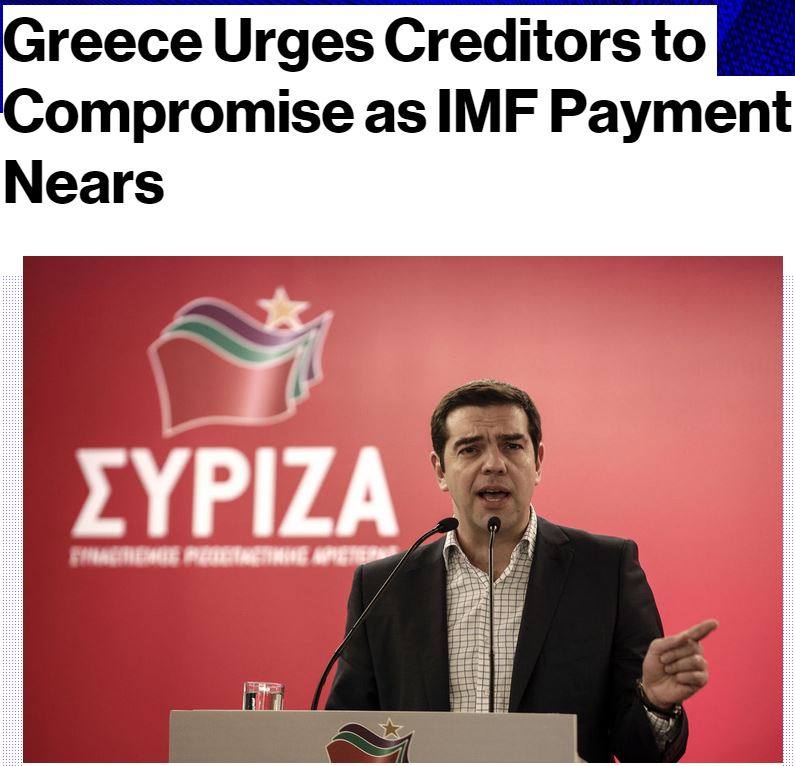 Χθες ο πρωθυπουργός Αλέξης Τσίπρας είπε ότι η Ελλάδα δεν μπορεί να εφαρμόσει πια μέτρα λιτότητας, ο υπουργός Οικονομικών Γιάννης Βαρουφάκης δήλωσε ότι η κυβέρνησή του έχει κάνει τα τρία τέταρτα της διαδρομής, έτσι είναι στο χέρι των πιστωτών να καλύψουν το υπόλοιπο. Ο υπουργός Εσωτερικών Νίκος Βούτσης, έφτασε να πει ότι η Ελλάδα θα μπορούσε και να μην πληρώσει το ΔΝΤ τον Ιούνιο χωρίς συμφωνία.