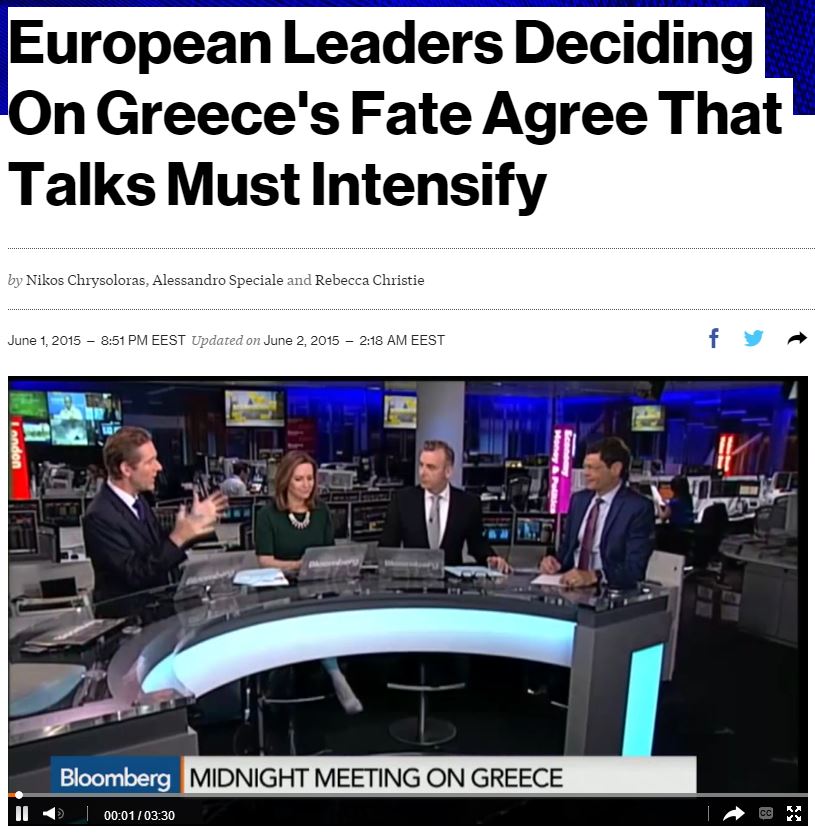 Οι Ευρωπαίοι ηγέτες και η επικεφαλής του Διεθνούς Νομισματικού Ταμείου συμφώνησαν να συνεχίσουν τις εντατικές διαπραγματεύσεις για την τύχη στην Ελλάδα μετά από την έκτακτη συνεδρίαση στο Βερολίνο σχετικά με τους τρόπους αποτροπής της χρεοκοπίας, σημειώνει το Bloomberg.