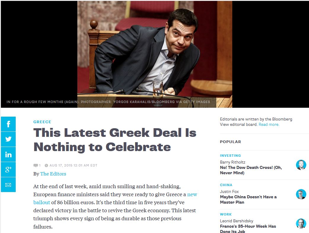 Bloomberg View: Το τρίτο πακέτο δεν σηκώνει πανηγυρισμούς