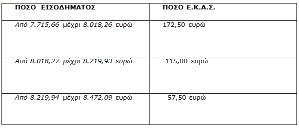 – Για συνολικά ποσά εισοδήματος από 7.715,66 ευρώ μέχρι του ποσού των 8.472,09 ευρώ κοιτάξτε το πινακάκι: