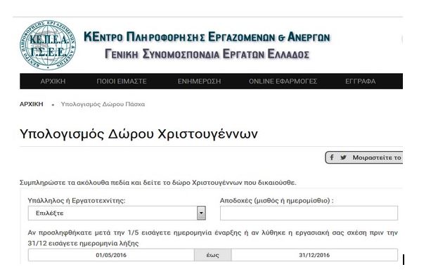 Οι εργαζόμενοι μπορούν το υπολογίσουν πατώντας στον παρακάτω σύνδεσμο: http://kepea.gr/calc-doro-xristoygennon.php.