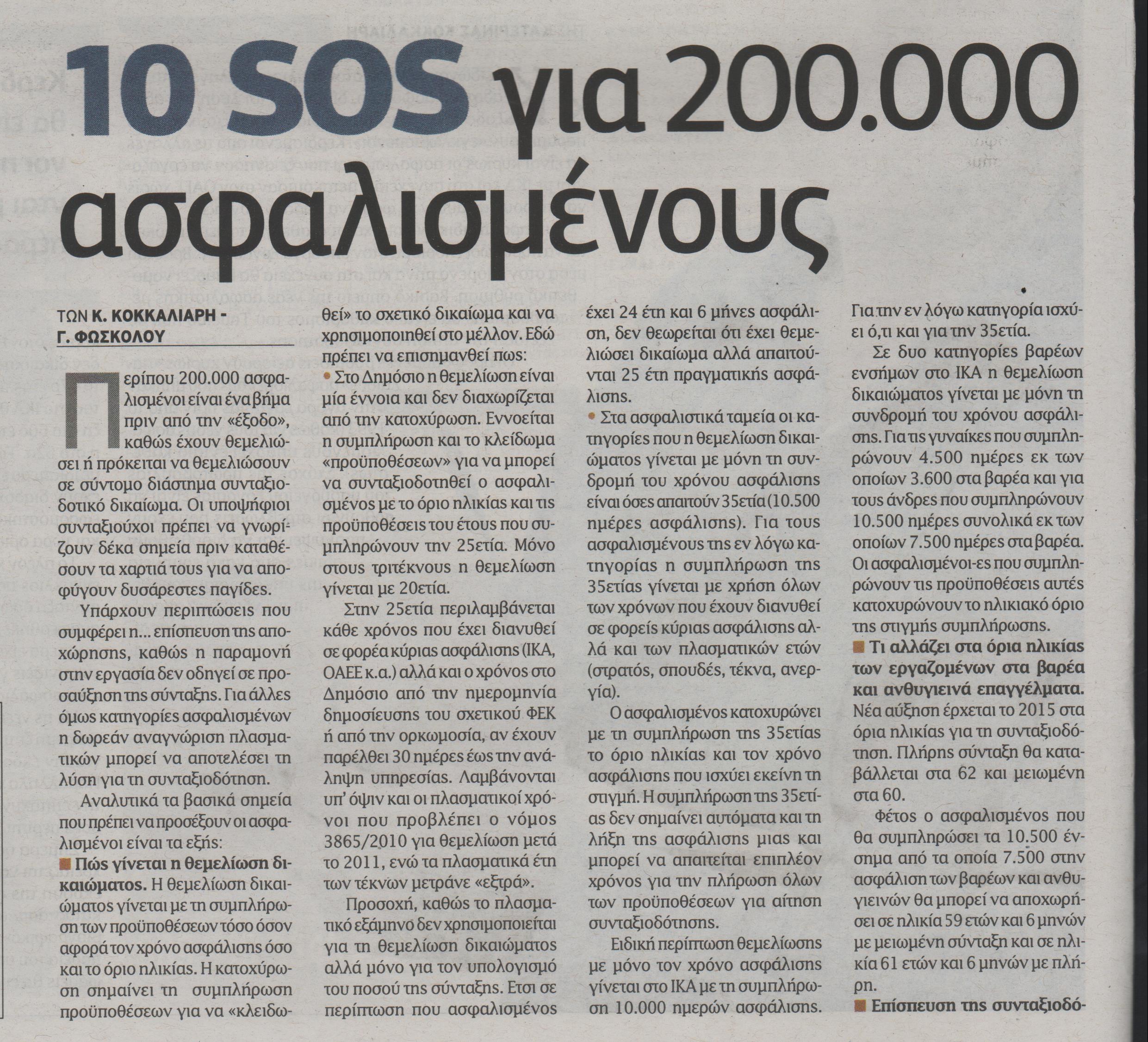 Δέκα SOS για “υποψήφιους” συνταξιούχους