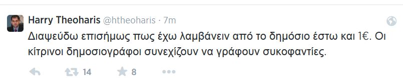 “Διαψεύδω επισήμως πως έχω λαμβάνειν από το δημόσιο έστω και 1€. Οι κίτρινοι δημοσιογράφοι συνεχίζουν να γράφουν συκοφαντίες”, έγραψε ο ίδιος στο Twitter.