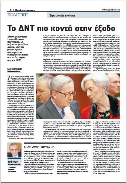 Την ίδια εκτίμηση έχουν διαμορφώσει και τα κορυφαία στελέχη της ομάδας διαπραγμάτευσης της Αθήνας, με την κυβέρνηση να ενδιαφέρεται πολύ να αποχωρήσει το ΔΝΤ. Και αυτό γιατί έχει την προσδοκία ότι, αν όντως φύγει, η διαπραγμάτευση με τον ESM θα αποκτήσει σαφώς πιο πολιτικό χαρακτήρα, ενώ θα σταματήσει και ο διαρκής φόβος ότι μια πλευρά των δανειστών μπορεί ανά πάσα στιγμή να θέσει ξανά στο τραπέζι παράλογες απαιτήσεις.