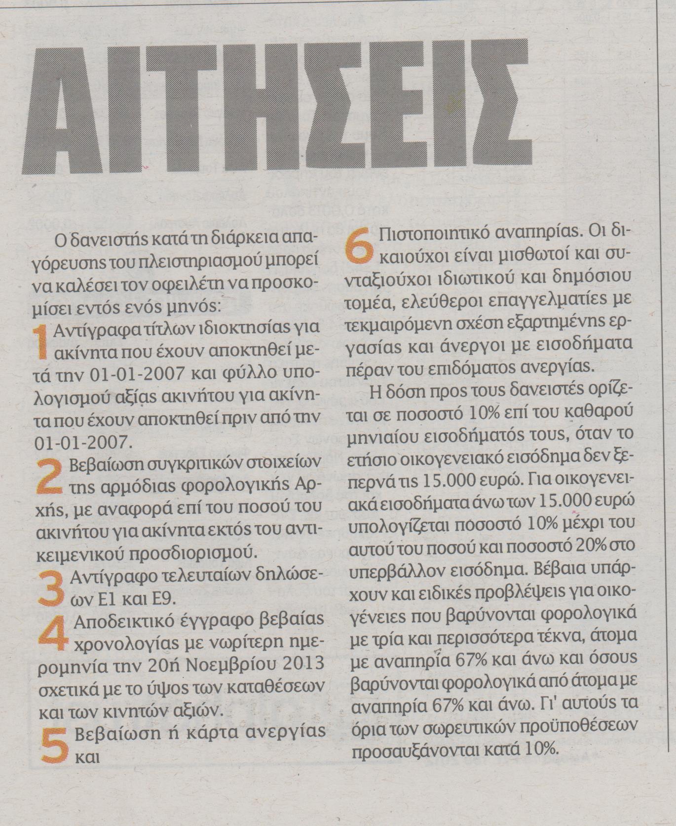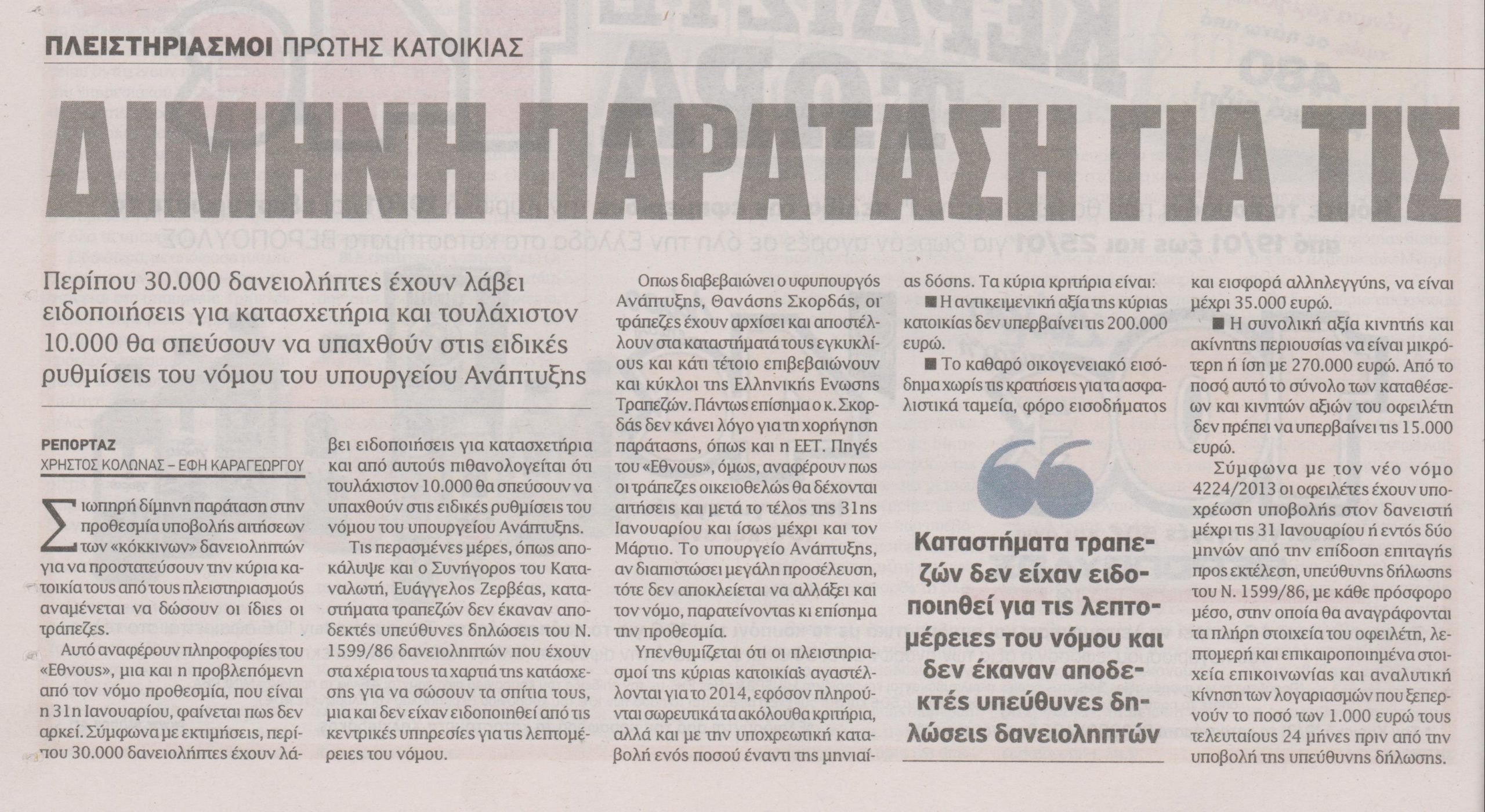 Τις περασμένες μέρες, όπως αποκάλυψε και ο Συνήγορος του Καταναλωτή, Ευάγγελος Ζερβέας, καταστήματα τραπεζών δεν έκαναν αποδεκτές υπεύθυνες δηλώσεις του Ν. 1599/86 δανειοληπτών που έχουν στα χέρια τους τα χαρτιά της κατάσχεσης, για να σώσουν τα σπίτια τους, μια και δεν είχαν ειδοποιηθεί από τις κεντρικές υπηρεσίες για τις λεπτομέρειες του νόμου.