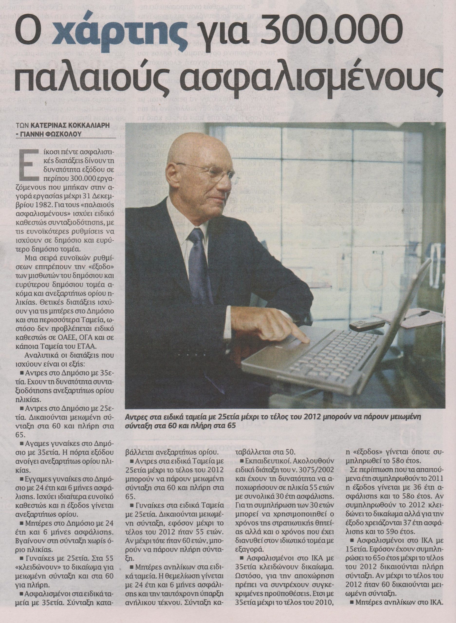 Είκοσι πέντε ασφαλιστικές διατάξεις δίνουν τη δυνατότητα εξόδου σε περίπου 300.000 εργαζόμενους που μπήκαν στην αγορά εργασίας μέχρι 31 Δεκεμβρίου 1982.