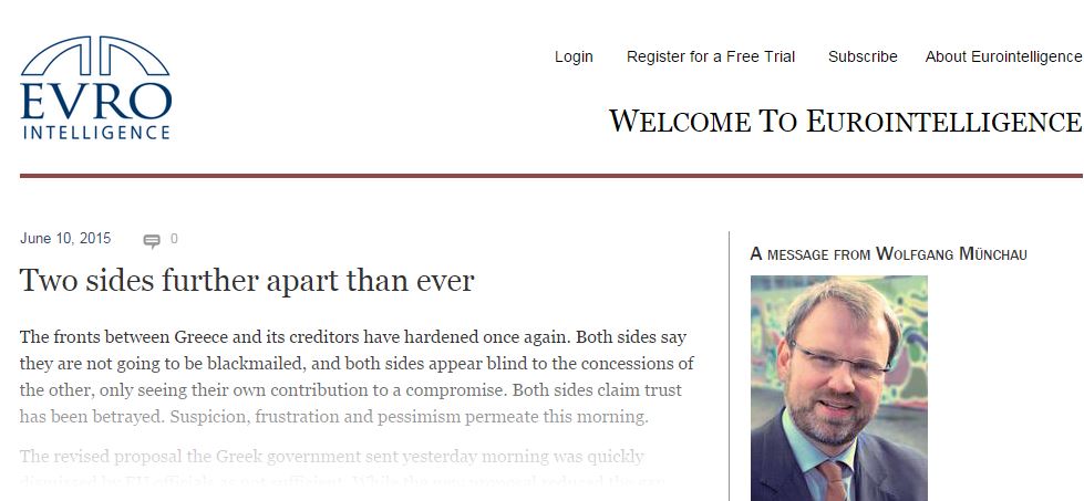 «Το μέτωπο ανάμεσα στην Ελλάδα και τους πιστωτές της έχει σκληρύνει και πάλι», αναφέρει «και οι δύο πλευρές δηλώνουν ότι δεν πρόκειται να εκβιαστούν, και οι δύο πλευρές ακυρώνουν τις παραχωρήσεις που ζητούν οι άλλοι και βλέπουν μόνο τη δική τους πρόταση για συμβιβαστική λύση. Και οι δύο πλευρές ισχυρίζονται ότι έχει χαθεί η εμπιστοσύνη. Καχυποψία, απογοήτευση και η απαισιοδοξία κυριαρχούν».