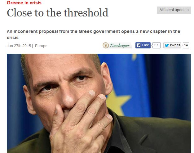 Η Ελλάδα είναι κοντά όριο, με τις τράπεζες στεγνές και την ΕΚΤ να πιέζει με διακοπή ρευστότητας σε αντίποινα για τη στάση της ελληνικής κυβέρνησης να καλέσει δημοψήφισμα.