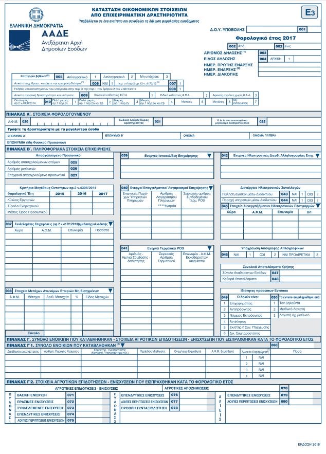 Συγκεκριμένα στο νέο Ε3 θα πρέπει να δηλωθούν για πρώτη φορά φέτος από κάθε επιχείρηση και ελεύθερο επαγγελματία: