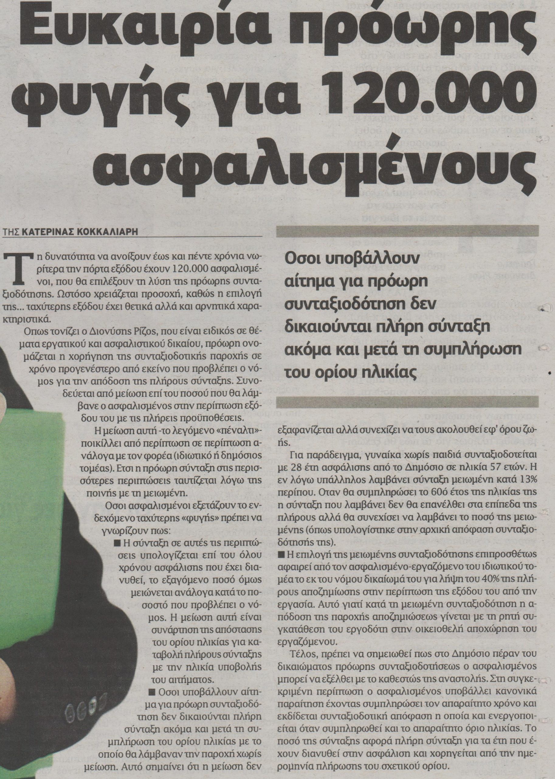 Ευκαιρία πρόωρης φυγής για 120.000 ασφαλισμένους