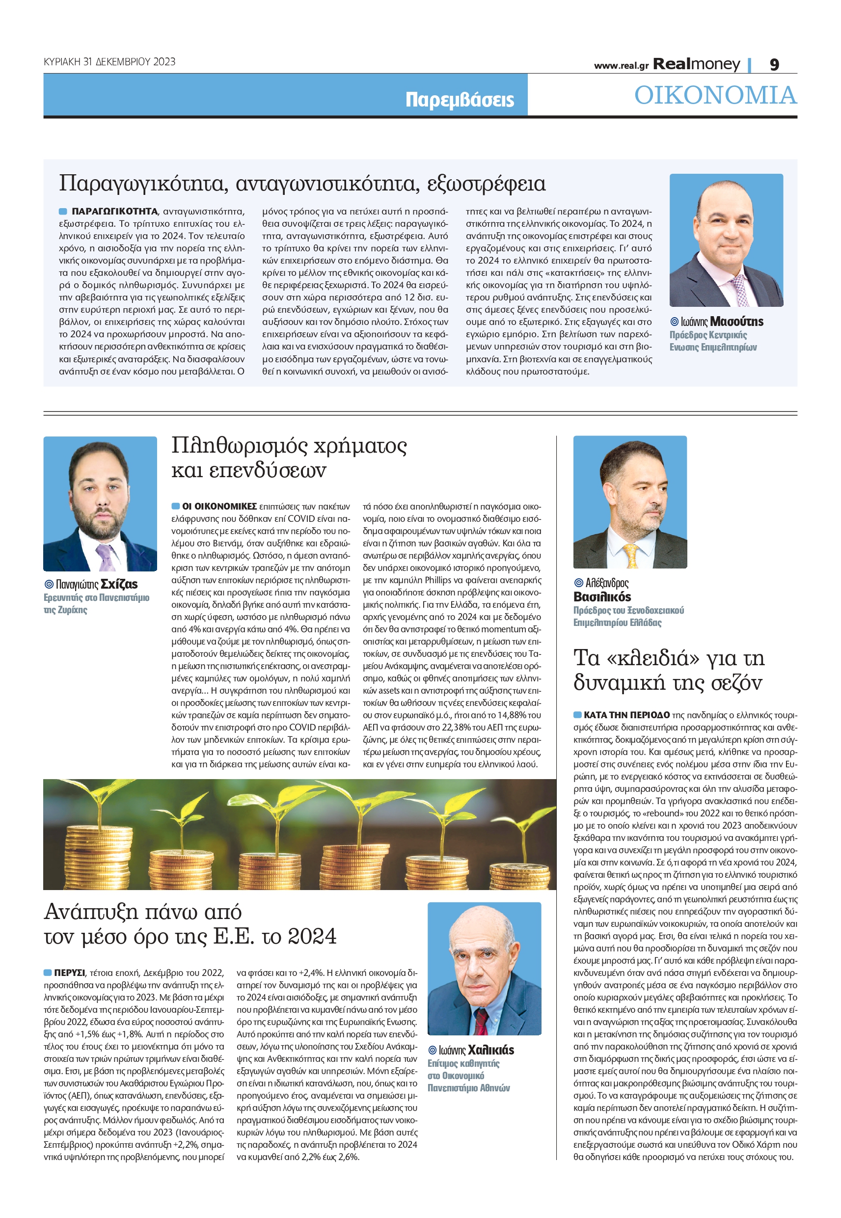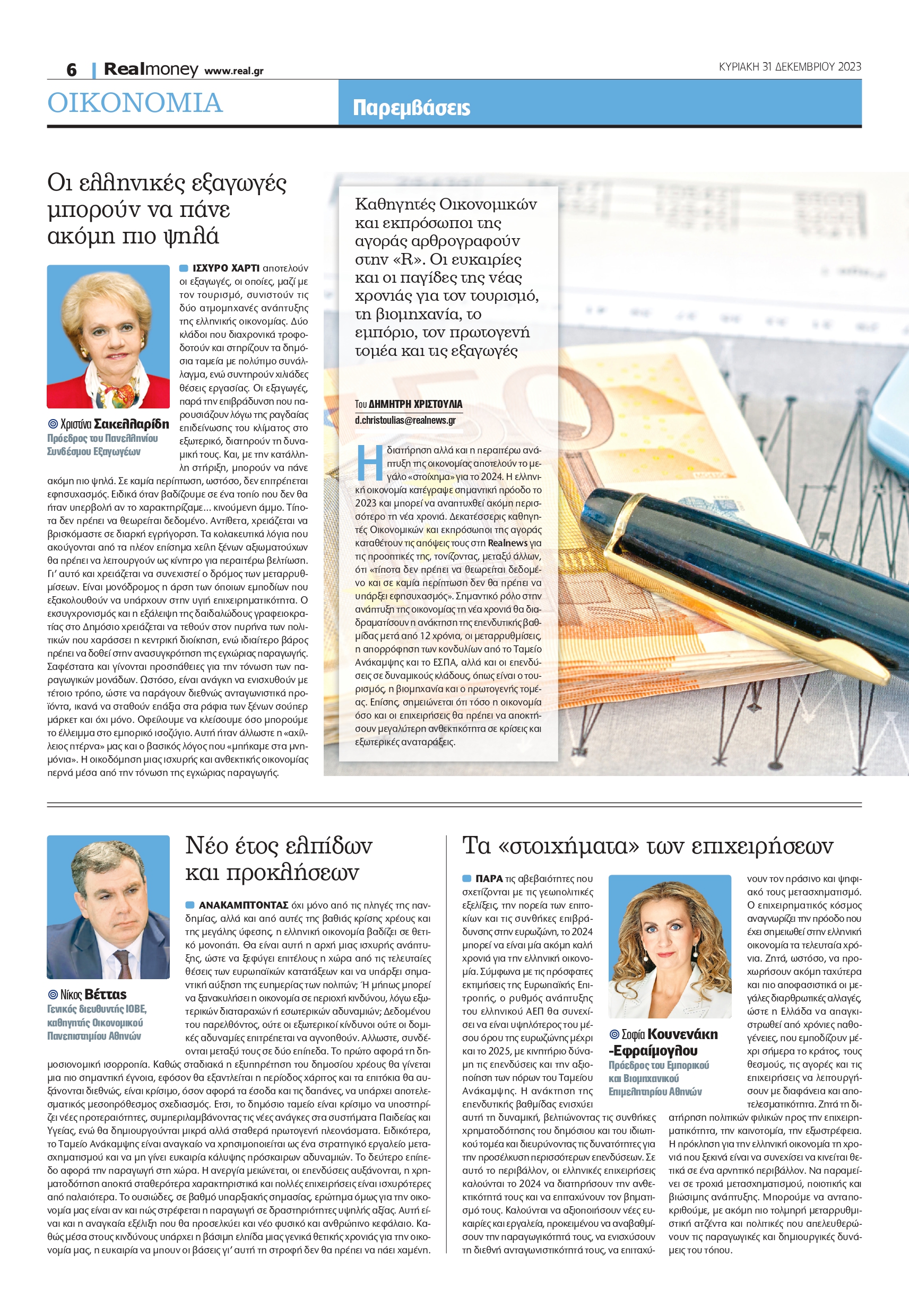 Η διατήρηση αλλά και η περαιτέρω ανάπτυξη της οικονομίας αποτελούν το μεγάλο «στοίχημα» για το 2024. Η ελληνική οικονομία κατέγραψε σημαντική πρόοδο το 2023 και μπορεί να αναπτυχθεί ακόμη περισσότερο τη νέα χρονιά. 16 καθηγητές Οικονομικών και εκπρόσωποι της αγοράς καταθέτουν τις απόψεις τους στη Realnews για τις προοπτικές της, τονίζοντας, μεταξύ άλλων, ότι «τίποτα δεν πρέπει να θεωρείται δεδομένο και σε καμία περίπτωση δεν θα πρέπει να υπάρξει εφησυχασμός».