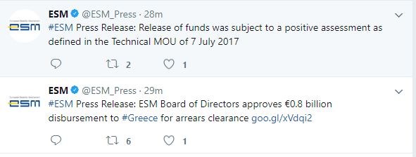 Την εκταμίευση της υποδόσης των 800 εκατ. για την αποπληρωμή των ληξιπρόθεσμων οφειλών του Δημοσίου ενέκρινε σήμερα το Διοικητικό Συμβούλιο του Ευρωπαϊκού Μηχανισμού Σταθερότητας.Η αποδέσμευση των κεφαλαίων έρχεται σε συνέχεια της θετικής αποτίμησης των θεσμών για την εκκαθάριση προηγούμενων οφειλών του δημοσίου.