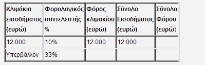 Παράδειγμα 2ο: Ένας φορολογούμενος δηλώνει εισόδημα 30.000 ευρώ. Για αυτό το εισόδημα ο φόρος που προκύπτει βάσει της κλίμακας μισθωτών και συνταξιούχων είναι (30.000-25.000)*32%+5.500=7.100 ευρώ.
