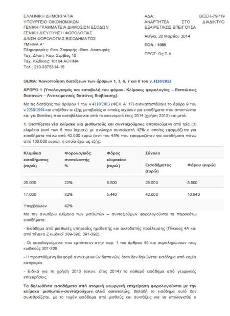 Εγκύκλιος: Υπολογίστε τον φόρο σας
