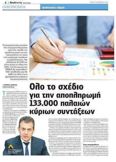 Σύμφωνα με πληροφορίες της Realnews, ο υπουργός Εργασίας και Κοινωνικών Υποθέσεων, Γιάννης Βρούτσης, σε συνεργασία με τον διοικητή του Ηλεκτρονικού Εθνικού Φορέα Κοινωνικής Ασφάλισης Χρήστο Χάλαρη, προχωρά, με εντολή του ίδιου του πρωθυπουργού Κυριάκου Μητσοτάκη, στην κατάρτιση σχεδίου για την τακτοποίηση όλων των ληξιπρόθεσμων αιτήσεων συνταξιοδότησης για κύρια ασφάλιση, οι οποίες στο τέλος Σεπτεμβρίου ήταν 133.354 και για τις οποίες απαιτούνται 608 εκατ. ευρώ. Στη συνέχεια θα υπάρξει σχεδιασμός για την αποπληρωμή περισσότερων από 100.000 επικουρικών συντάξεων και 50.000 εφάπαξ, με το συνολικό κόστος των ληξιπρόθεσμων να ξεπερνούν το 1,1 δισ. ευρώ. Το ζήτημα των εκκρεμών συντάξεων χαρακτηρίστηκε ως «πρώτης επιχειρησιακής προτεραιότητας για το 2021» από τον πρωθυπουργό, ο οποίος αναγνώρισε τη μεγάλη πρόοδο στην απονομή νέων συντάξεων μέσω του συστήματος «Ατλας», ωστόσο ζήτησε τη μεταφορά προσωπικού για την εκκαθάρισή τους.