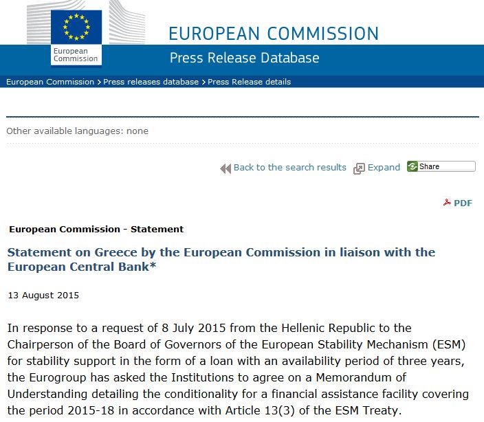 Όπως επισημαίνεται στη σχετική ανακοίνωση, οι διαπραγματεύσεις για το μνημόνιο στην Αθήνα, είχαν στόχο να επέλθει συμφωνία για ένα αξιόπιστο και περιληπτικό πακέτο μεταρρυθμίσεων. Το ΔΝΤ βοήθησε στην τεχνική ανάλυση και στον σχεδιασμό των προϋποθέσεων για το νέο πρόγραμμα του ESM.