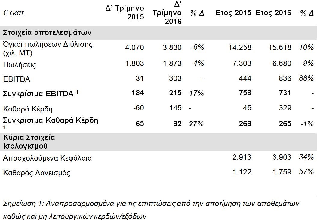 ΟΜΙΛΟΣ ΕΛΛΗΝΙΚΑ ΠΕΤΡΕΛΑΙΑΒΑΣΙΚΑ ΜΕΓΕΘΗ ΕΝΟΠΟΙΗΜΕΝΩΝ ΑΠΟΤΕΛΕΣΜΑΤΩΝ ΧΡΗΣΗΣ Δ’ ΤΡΙΜΗΝΟΥ / ΕΤΟΥΣ 2016(σύμφωνα με τα Διεθνή Πρότυπα Χρηματοοικονομικής Πληροφόρησης)