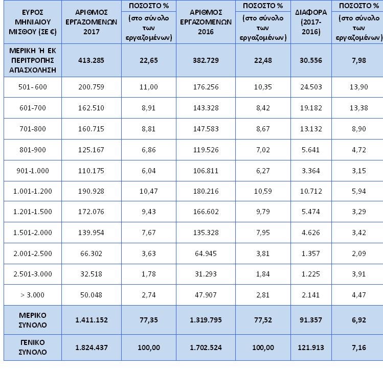 Από 901 έως 1.000 ευρώ παίρνουν 110.175 εργαζόμενοι ενώ έως 1.500 ευρώ το 3,29% του συνόλου.