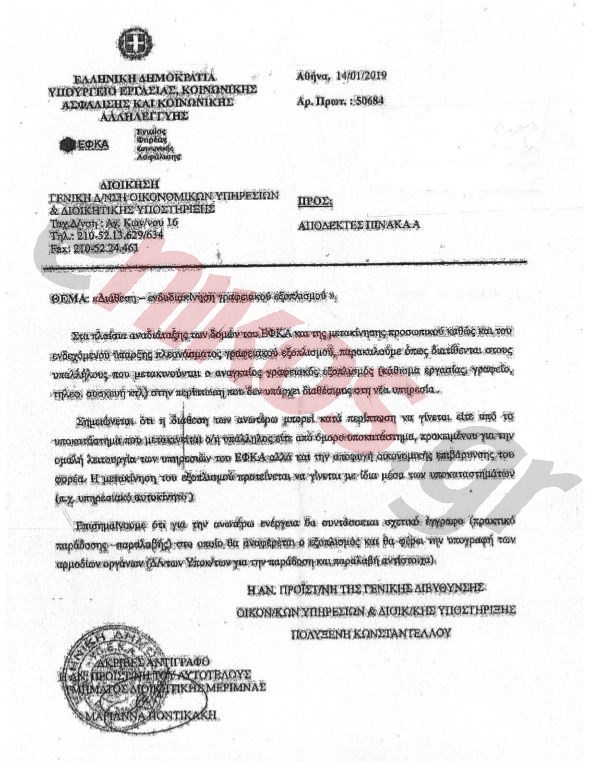 Τραγελαφική χαρακτήρισε την κατάσταση που επικρατεί στον ΕΦΚΑ ο αντιπρόεδρος της Ομοσπονδίας Εργαζομένων ΙΚΑ –ΕΤΑΜ, Αντώνης Νικολόπουλος, μιλώντας στον Real FM 97,8 και την εκπομπή του Μάνου Νιφλή.Όπως εξήγησε ο κ. Νικολόπουλος «εξακολουθούν να λειτουργούν οι παλιές δομές των Ταμείων ακόμα και μετά την ανακοίνωση της ενοποίησης στον ΕΦΚΑ». Σύμφωνα με τον ίδιο «ακόμα δεν υπάρχει ούτε οργανόγραμμα. Τώρα, όπως πληροφορούμαστε, έχει πάει για ΦΕΚ, αλλά δεν έχουμε μέχρι σήμερα επίσημη ενημέρωση. Λειτουργούμε αυτή τη στιγμή με το μεταβατικό οργανόγραμμα και υποτίθεται ότι το τελικό θα λειτουργήσει όταν εφαρμοστεί η πλήρης ενοποίηση».Ο κ. Νικολόπουλος περιέγραψε πρωτοφανείς καταστάσεις, λέγοντας χαρακτηριστικά ότι «υπάρχει έγγραφο στο οποίο αναφέρεται ότι αν ένας υπάλληλος χρειαστεί να μετακινηθεί σε άλλη υπηρεσία, θα πρέπει να φροντίσει να πάρει μαζί του την καρέκλα, το γραφείο του, την τηλεφωνική του συσκευή… Διακίνηση εξοπλισμού το ονομάζουν. Πρόκειται για τραγελαφικά πράγματα».