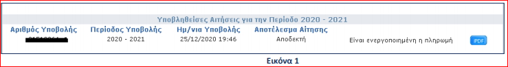 Θα πρέπει να δώσετε στον προμηθευτή πετρελαίου θέρμανσης τα σωστά στοιχεία, ΑΦΜ και ΑΡΙΘΜΟ ΠΑΡΟΧΗΣ ΡΕΥΜΑΤΟΣ, για να εκδώσει το παραστατικό αγοράς. Τα σωστά στοιχεία είναι εκείνα με τα οποία υποβάλατε ή θα υποβάλετε αίτηση και αναγράφονται στο αποδεικτικό υποβολής το οποίο εμφανίζεται όταν πατήσετε το μπλε εικονίδιο με την ένδειξη PDF (Εικόνα 1).