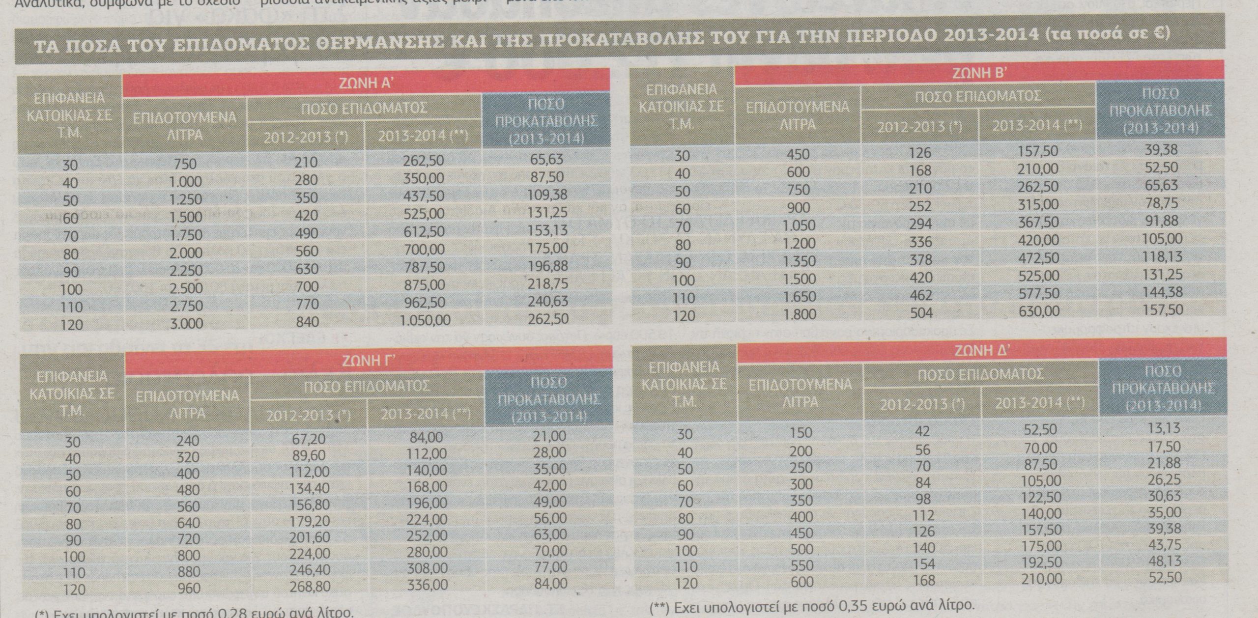 Από 52,50 έως 1050 ευρώ θα κυμαίνονται τα ποσά του νέου επιδόματος θέρμανσης που θα καταβληθούν την περίοδο από 15-10-2013 έως 30-4-2014 σε όσα νοικοκυριά αγοράσουν πετρέλαιο για τη θέρμανσή τους.