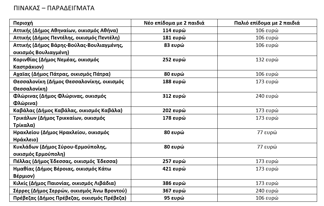 Ένα παράδειγμα: Στην περιοχή της Αττικής τον προηγούμενο χρόνο δινόταν ως επίδομα θέρμανσης το ποσό των 106 ευρώ σε οικογένεια με δύο ανήλικα παιδιά, ανεξαρτήτως της περιοχής στην οποία αυτή έμενε. Εφέτος, με τον εξατομικευμένο υπολογισμό, η ίδια οικογένεια εάν μένει στον οικισμό Πεντέλης του Δήμου Πεντέλης, όπου το υψόμετρο είναι μεγαλύτερο και οι ανάγκες θέρμανσης περισσότερες, θα λάβει μεγαλύτερο επίδομα θέρμανσης, ύψους 181 ευρώ. Η ίδια οικογένεια εάν μένει στον οικισμό Βουλιαγμένης του Δήμου Βάρης-Βούλας-Βουλιαγμένης, όπου το κλίμα είναι πιο ήπιο, θα λάβει 83 ευρώ. Τέλος, εάν μένει στον οικισμό της Αθήνας, θα λάβει επίδομα θέρμανσης 114 ευρώ.