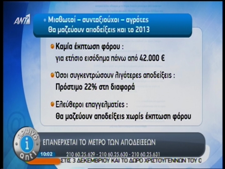 Επανέρχεται το μέτρο των αποδείξεων, το οποίο θα ισχύει και το 2013. Δείτε στις κάρτες του Antenna τι ισχύει: