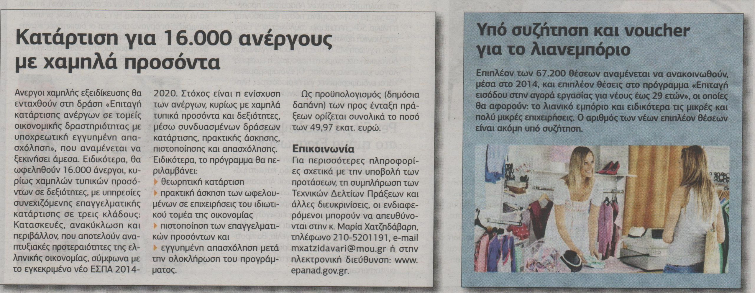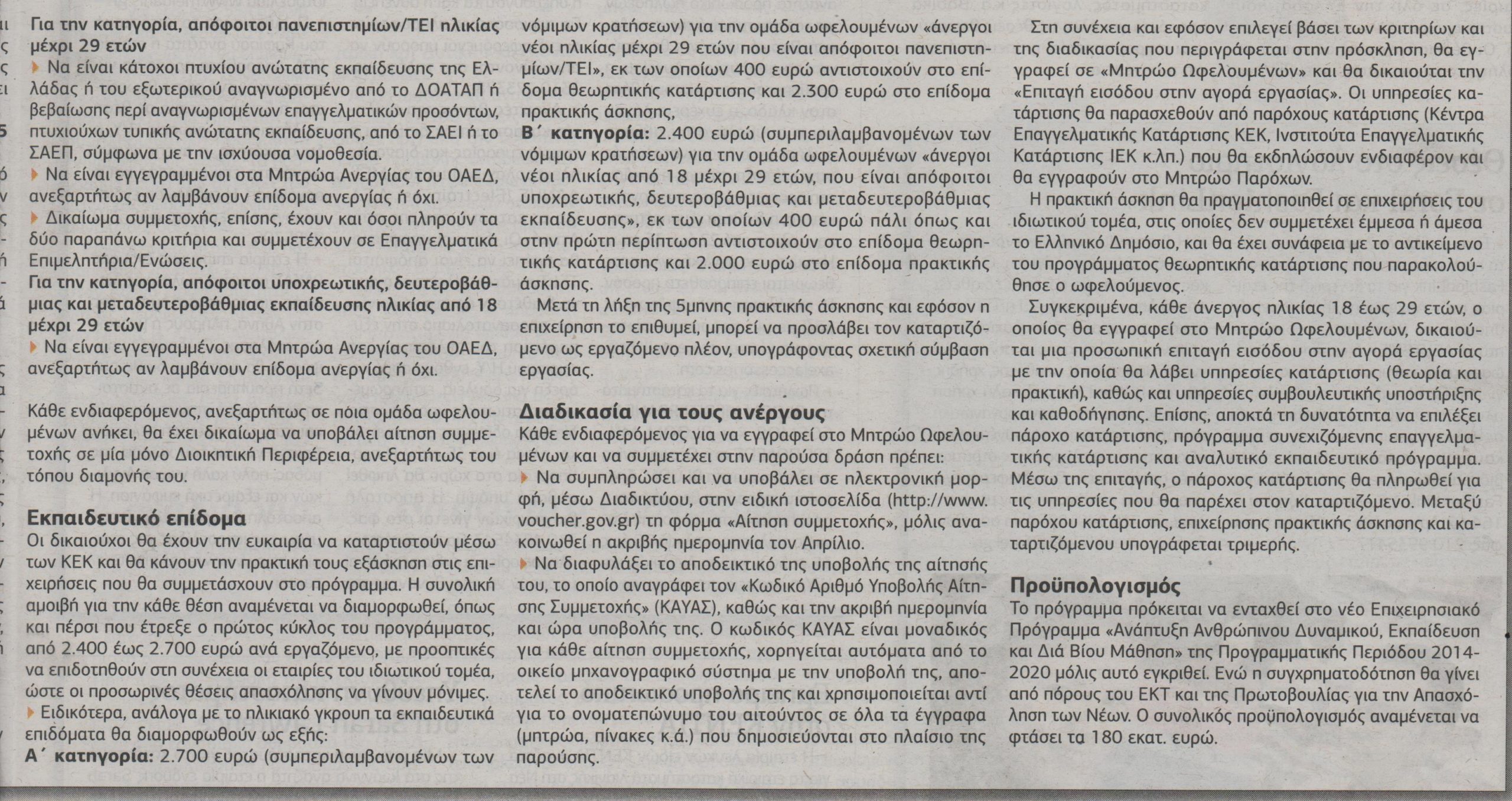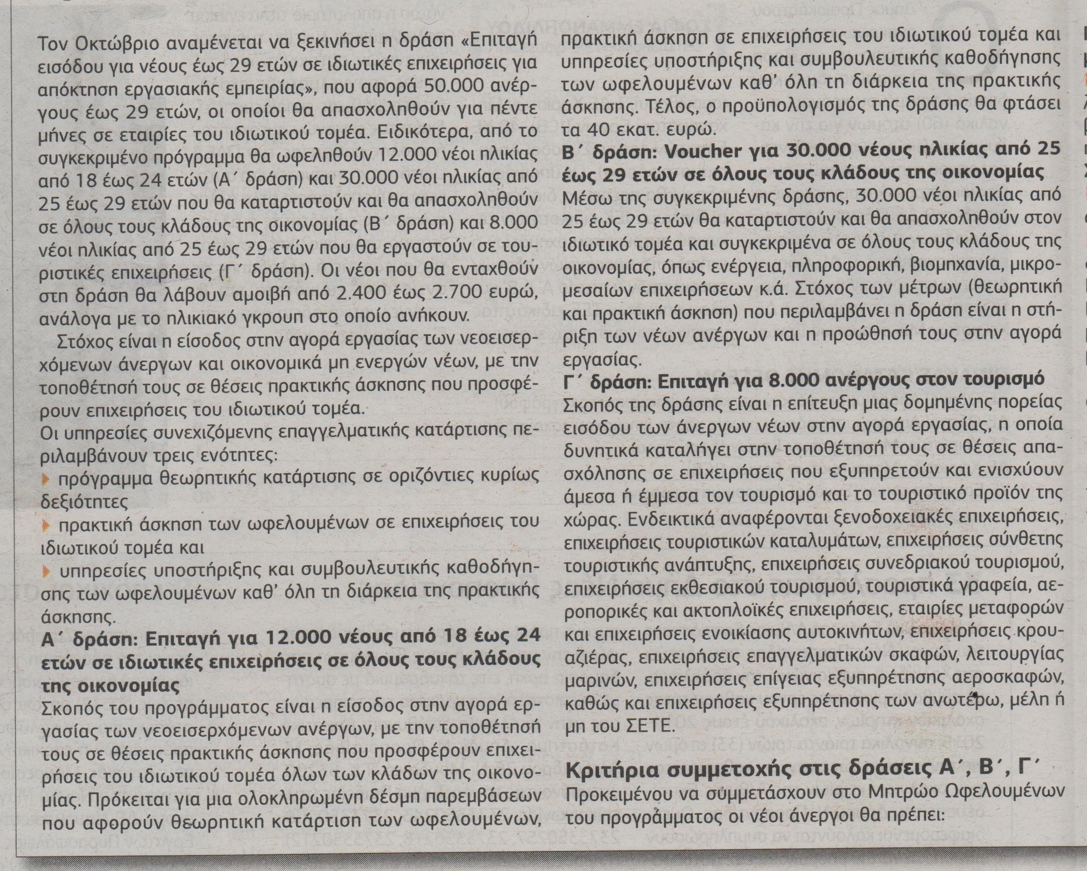 Μέσω “επιταγής” κατάρτισης ανοίγουν 67.200 νέες θέσεις εργασίας για άνεργους νέους σε κλάδους όπως η Υγεία, ο τουρισμός, η ενέργεια, η βιομηχανία, η πληροφορική κ.λ.π.