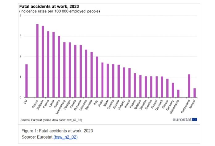 «Η χώρα μας, σύμφωνα και με τα επίσημα στοιχεία της Eurostat, παρουσιάζει μια πολύ καλή εικόνα συγκριτικά με τα υπόλοιπα κράτη μέλη της Ένωσης. Σύμφωνα με τα τελευταία στοιχεία που εξέδωσε η Eurostat τον Οκτώβριο του 2025, για τα εργατικά δυστυχήματα μεταξύ των χωρών της ΕΕ, η Ελλάδα βρίσκεται μεταξύ των τριών χωρών όπου παρατηρούνται τα λιγότερα θανατηφόρα εργατικά ατυχήματα, πίσω μόνο από τη Γερμανία και την Ολλανδία. Και παρά το γεγονός ότι τα τελευταία χρόνια και το εργατικό δυναμικό έχει αυξηθεί κατά 509.000 εργαζομένους και η παραγωγική δραστηριότητα έχει αυξηθεί. Ως εργατικό ατύχημα νοείται κάθε πρόκληση σωματικής βλάβης ή εμφάνιση νόσου ή επιδείνωση προϋπάρχουσας νόσου σε εργαζόμενο με συνέπεια την μερική ή ολική, πρόσκαιρη ή διαρκή ανικανότητά του για εργασία ή/και τον θάνατό του, εξαιτίας ενός βίαιου εξωτερικού γεγονότος, μη σχετιζόμενου με τον οργανισμό του παθόντος, εφ’ όσον το γεγονός έλαβε χώρα κατά την εκτέλεση της εργασίας του ή με αφορμή αυτήν και συνδέεται με την εργασία άμεσα ή έμμεσα με σχέση αιτίου και αποτελέσματος. Στην περίπτωση ατυχημάτων σε βάρος ένστολου προσωπικού των Ενόπλων Δυνάμεων και των Σωμάτων Ασφαλείας δεν εφαρμόζεται η εργατική νομοθεσία σχετικά με την υγεία και την ασφάλεια στην εργασία όταν το ατύχημα λαμβάνει χώρα κατά τη διάρκεια δραστηριοτήτων με εγγενείς ιδιαιτερότητες, όπως προβλέπεται στο άρθρ. 2 παρ. 2 εδ. α’ και β΄ του Κώδικα Νόμων για την Υγεία και την Ασφάλεια στην Εργασία.