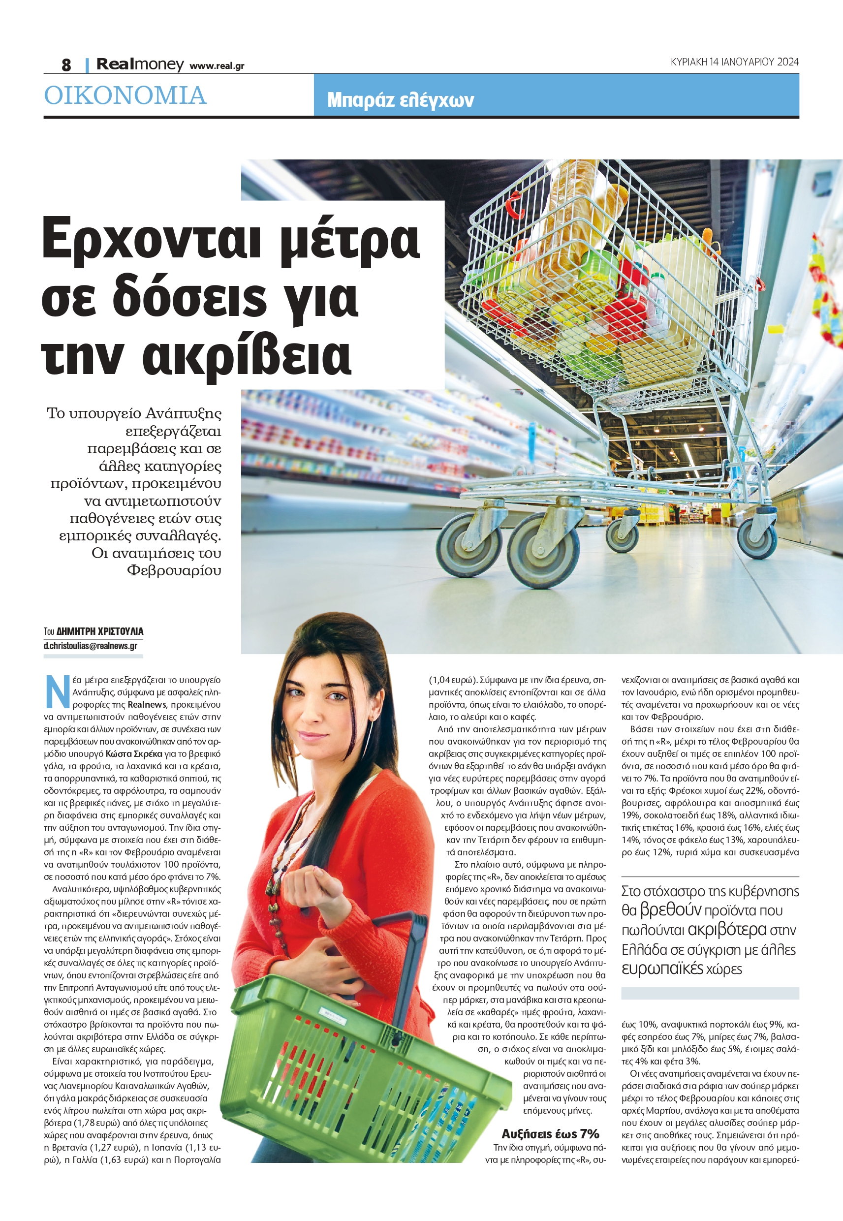που ανακοινώθηκαν για τον περιορισμό της ακρίβειας στις συγκεκριμένες κατηγορίες προϊόντων θα εξαρτηθεί το εάν θα υπάρξει ανάγκη για νέες ευρύτερες παρεμβάσεις στην αγορά τροφίμων και άλλων βασικών αγαθών. Εξάλλου, ο υπουργός Ανάπτυξης άφησε ανοιχτό το ενδεχόμενο για λήψη νέων μέτρων, εφόσον οι παρεμβάσεις που ανακοινώθηκαν την Τετάρτη δεν φέρουν τα επιθυμητά αποτελέσματα.